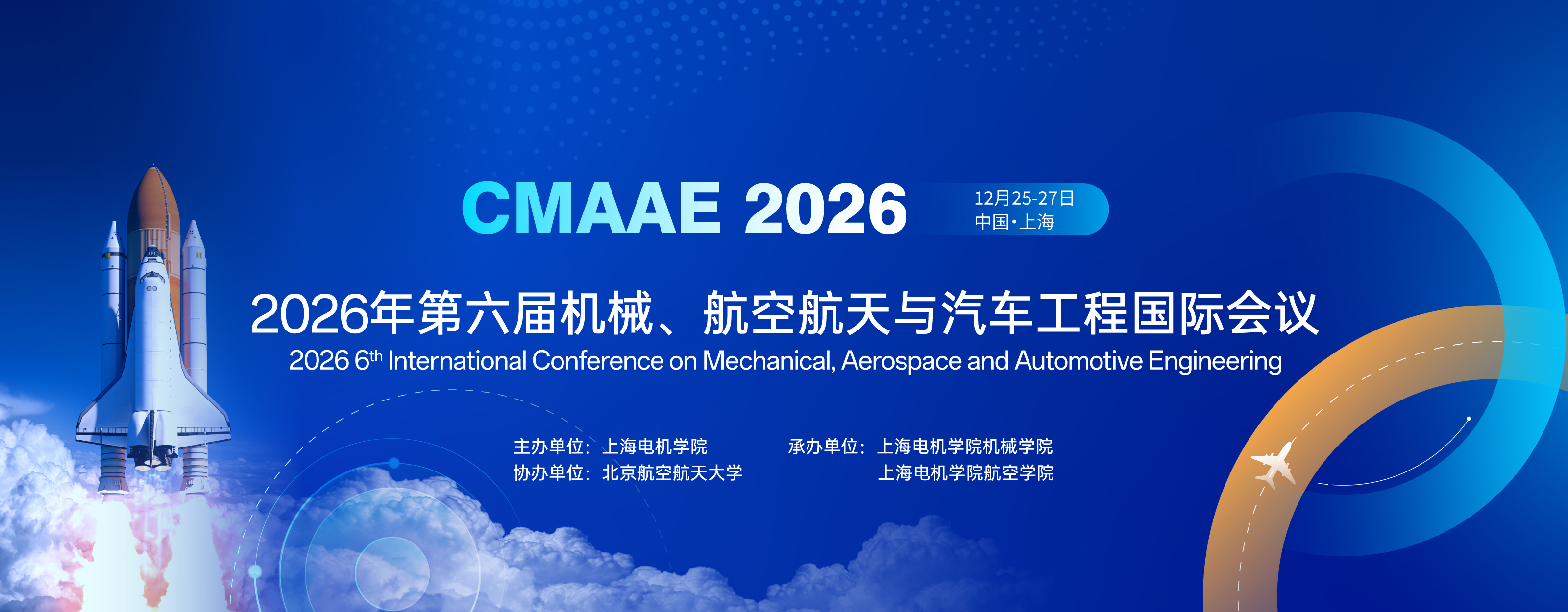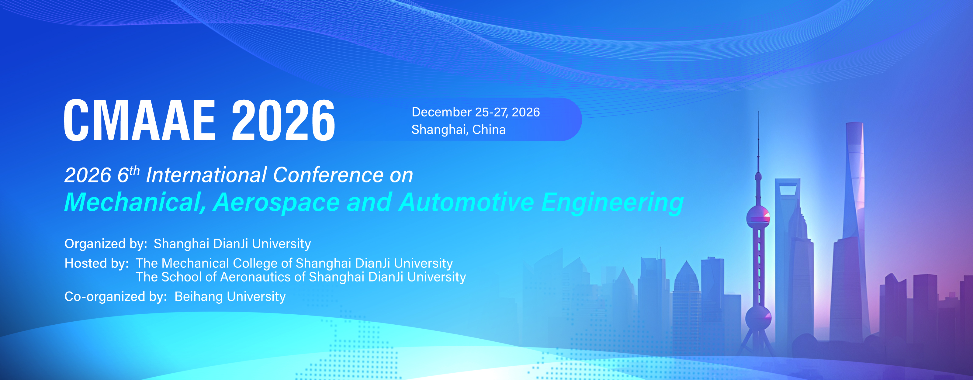 The 2026 6th International Conference on Mechanical, Aerospace and Automotive Engineering (CMAAE 2026) will be held in Shanghai, China during December 25-27, 2026. It is organized by Shanghai DianJi University, hosted by the Mechanical College and the School of Aeronautics of Shanghai DianJi University, and co-organized by Beihang University.