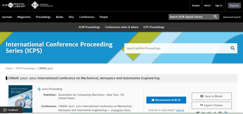 2021 1st International Conference on Mechanical, Aerospace and Automotive Engineering(CMAAE 2021)has been published.